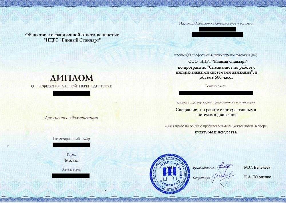- Диплом о профессиональной переподготовке установленного государством образца. Срок действия: бессрочно